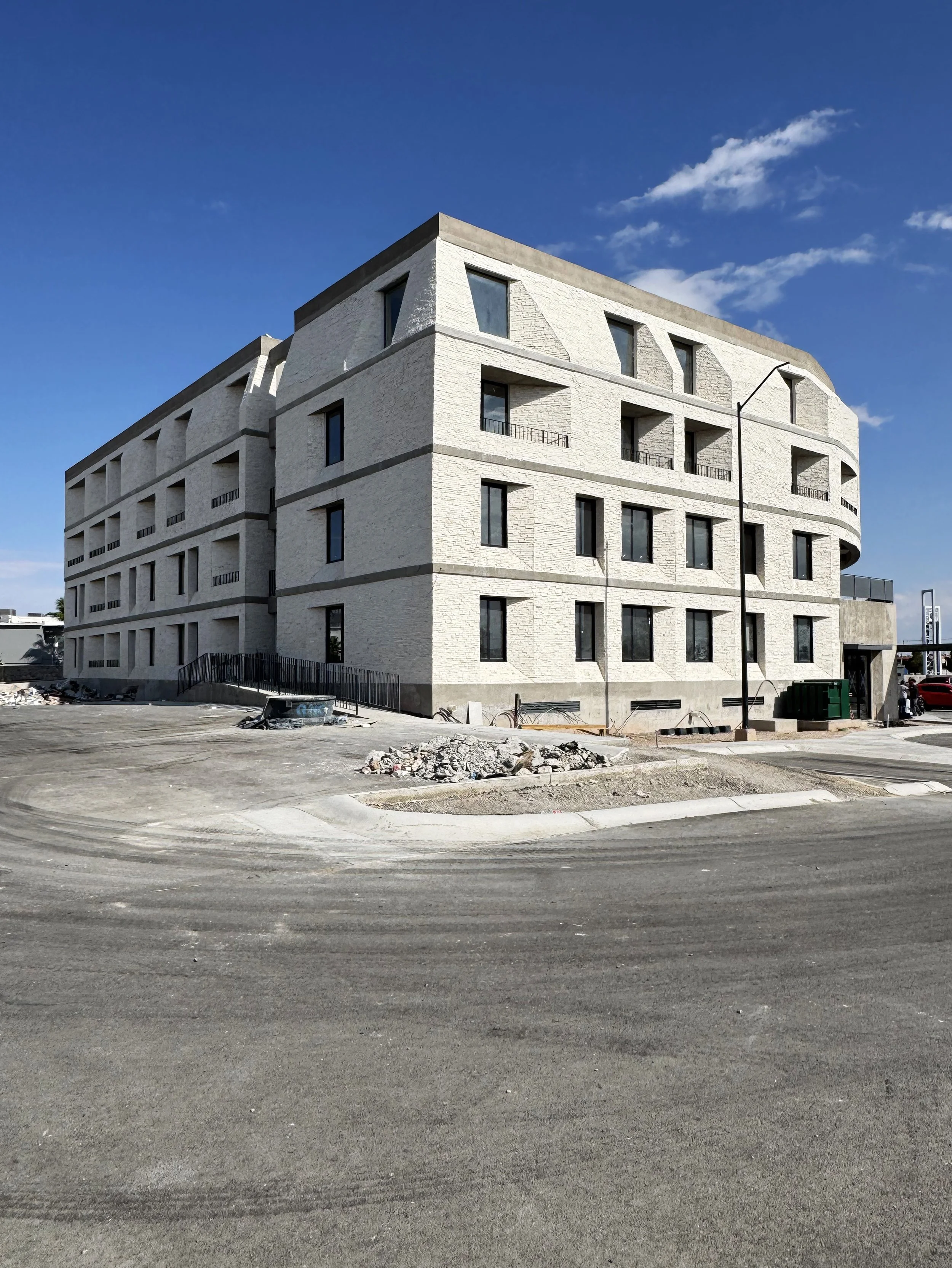 Mixed-use development under construction in Cd. Juarez, Mexico designed by Jorge Urias Studio, and developed by UG+ Desarrollos.